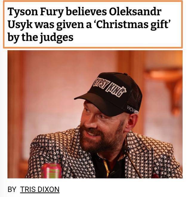 尽管乌西克与泰森·富里的二番战依然告一段落,但围绕本场大战的场外故事并莫得完毕。乌西克在上周末诚然以三个116-112的比分红功,但是富里却嗤之以鼻,他认为乌西克与我方的两场较量完竣输了,是裁判的功劳让他收效,也便是说富里认为我方被黑了!